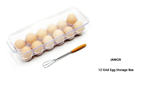 JAMOR 12 Grid Egg Storage Box Refrigerator Egg Rack, Egg Tray With Lid, Egg Plastic Egg Storage Box, Stackable Egg Rack, BPA-Free