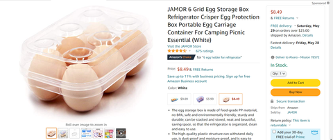 The egg box can hold 6 eggs, which is suitable for almost all kinds of eggs and duck eggs on the market. The egg box is a transparent box, you can easily tell the status and quantity of the eggs inside. It is convenient for you to replenish your egg inventory in time!