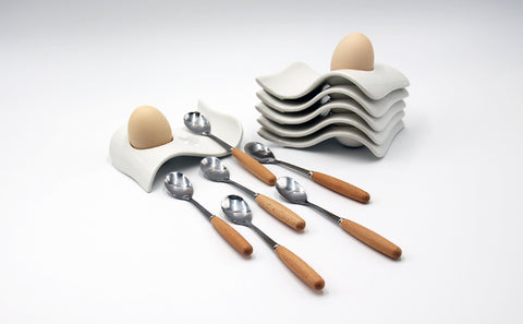 Type B: 6 wavy egg cups and 6 stainless steel spoons with wooden handles!